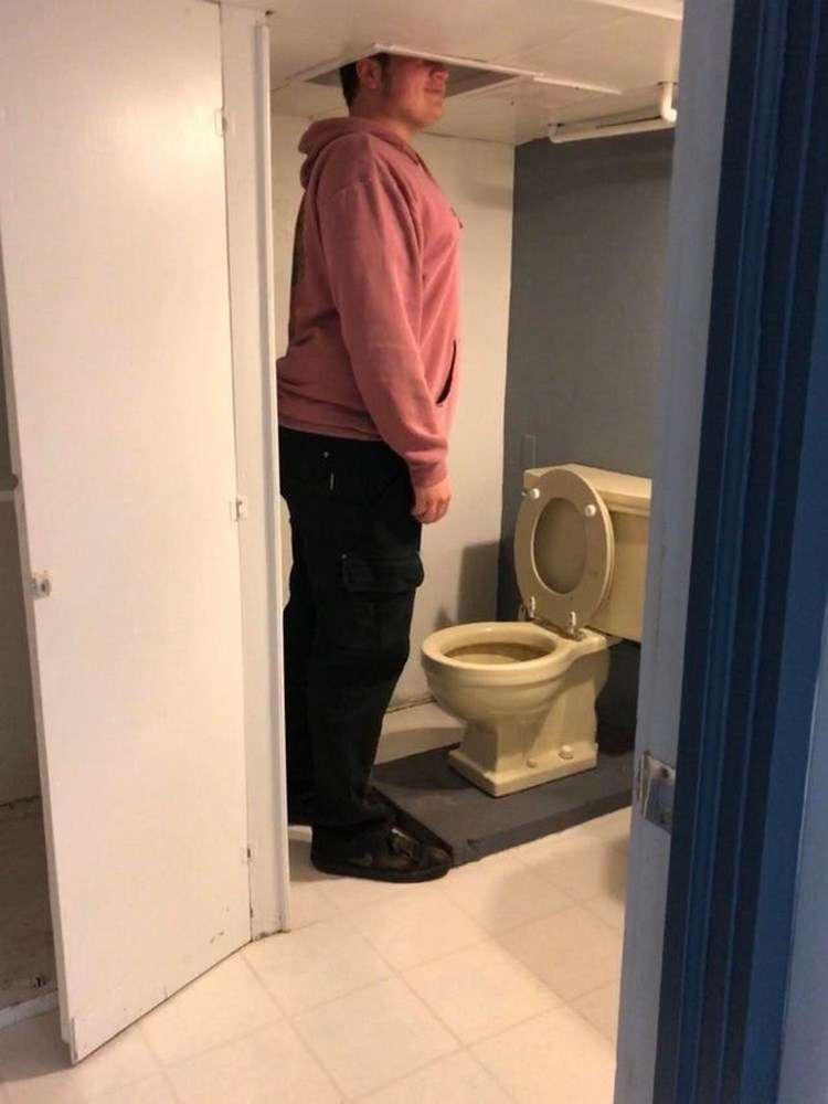 Дыра в потолке — это лайфхак такой, для данного туалета