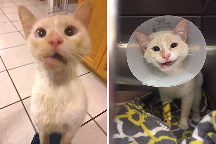 Как сообщается, так кошечка стала выглядеть после неудачной встречи с автомобилем. Её забрал к себе домой ветеринар, который о ней заботился
