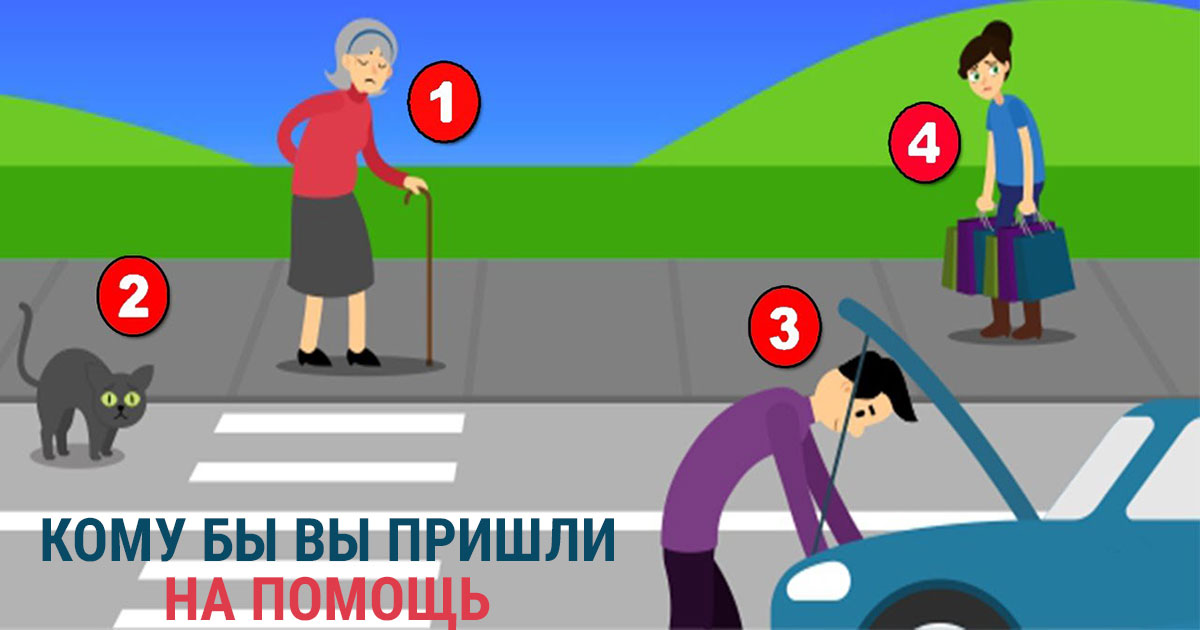 Хотите проверить свой характер? Тогда просто взгляните на данную картинку. Перед Вами четыре трудных жизненных ситуаций, одной из них в Ваших силах помочь разрешиться. Кому Вы готовы прийти на помощь? Ответь самому себе. Не думая. Готовы узнать о себе?