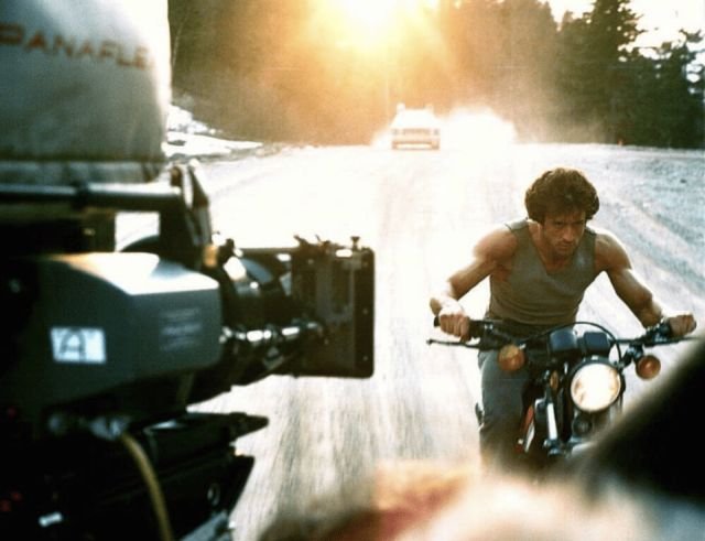 Сильвестр Сталлоне гоняет на съёмках фильма «Рэмбо»