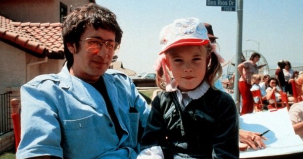 Стивен Спилберг и Дрю Бэрримор на съёмках «Инопланетянина»