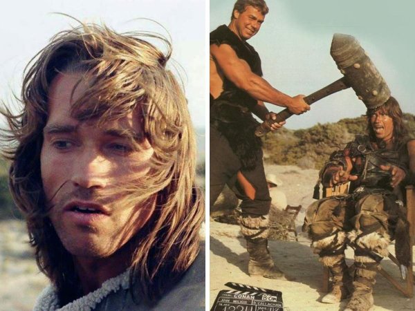 Длинноволосый Арнольд Шварценеггер на съёмках фильма «Конан-варвар»
