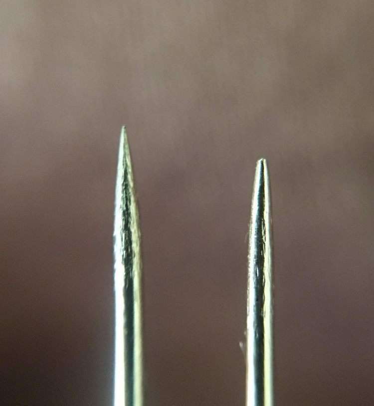 Новая швейная игла и она же после 4 месяцев использования