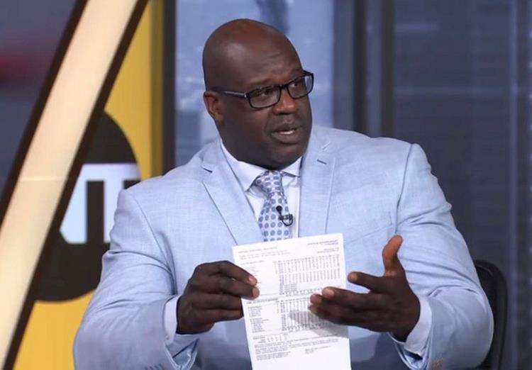 Бывший баскетболист Шакил О’Нил (рост 216 см) держит в руках обычный листок А4