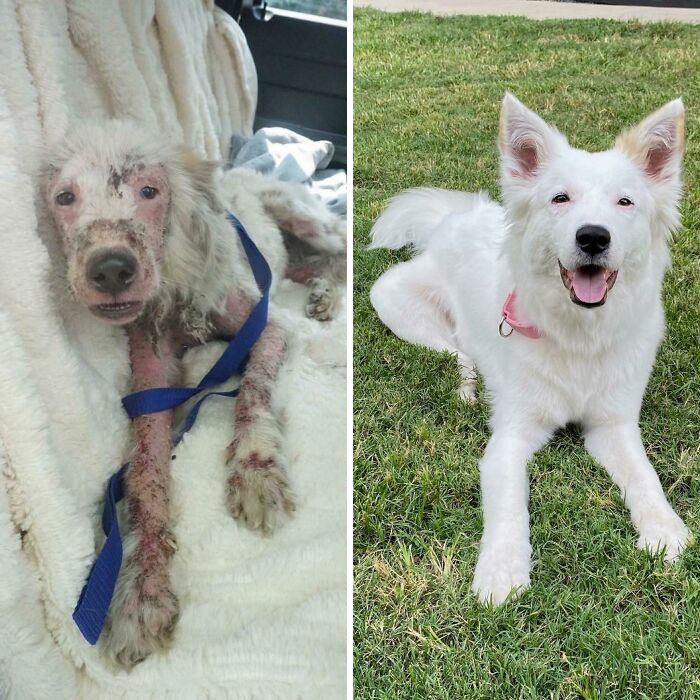 “Местный ветеринар вылечил эту спасенную беспризорную девочку от стригущего лишая несколько месяцев назад. Посмотри на нее сейчас”