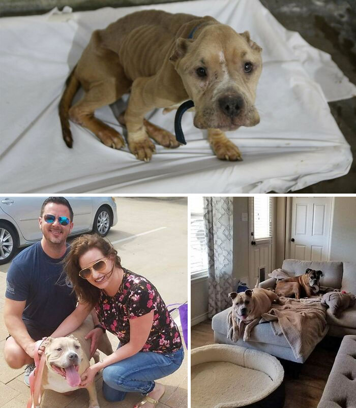 “Коко пришла к нам в состоянии «кожа да кости». А теперь давайте перенесёмся на несколько месяцев вперед, где она счастлива, здорова и живёт в доме”